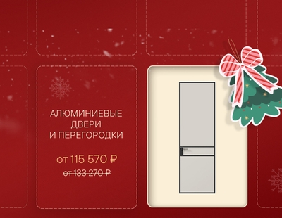 С 5 по 25 декабря при покупке алюминиевых дверей Formato и  алюминиевых перегородок Formato дарим скидку 20% на полотно.