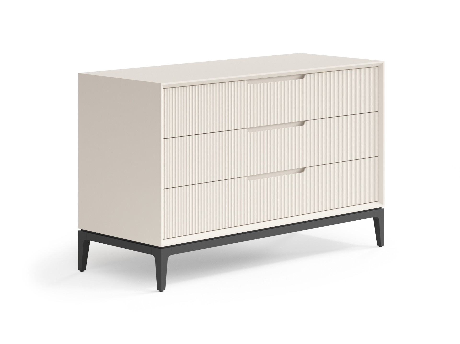 Изделие лаконичной формы внесёт в пространство спокойствие и надёжность, а рельефная фрезеровка на фасаде добавит индивидуальность. Благодаря скрытым направляющим выдвижных ящиков вид изделия остаётся безупречным всё время пользования. Количество циклов открывания и закрывания — 80 000. Это значит, что если вы будете пользоваться комодом дважды в день, изделие будет оставаться в идеальном рабочем состоянии и радовать вас примерно 55 лет.
