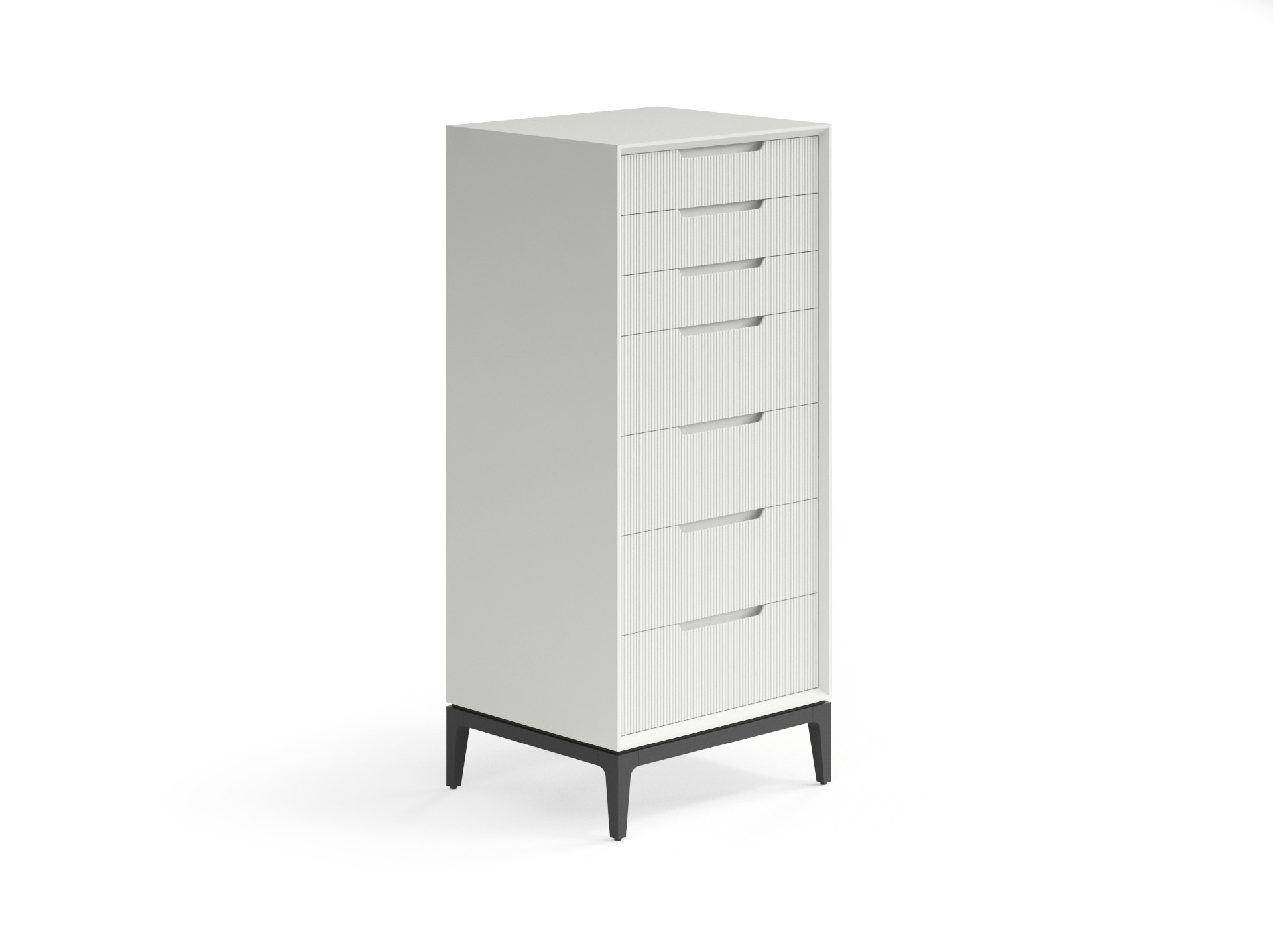 Изделие лаконичной формы внесёт в пространство спокойствие и надёжность, а рельефная фрезеровка на фасаде добавит индивидуальность. Благодаря скрытым направляющим выдвижных ящиков вид изделия остаётся безупречным всё время пользования. Количество циклов открывания и закрывания — 80 000. Это значит, что если вы будете пользоваться комодом дважды в день, изделие будет оставаться в идеальном рабочем состоянии и радовать вас примерно 55 лет.