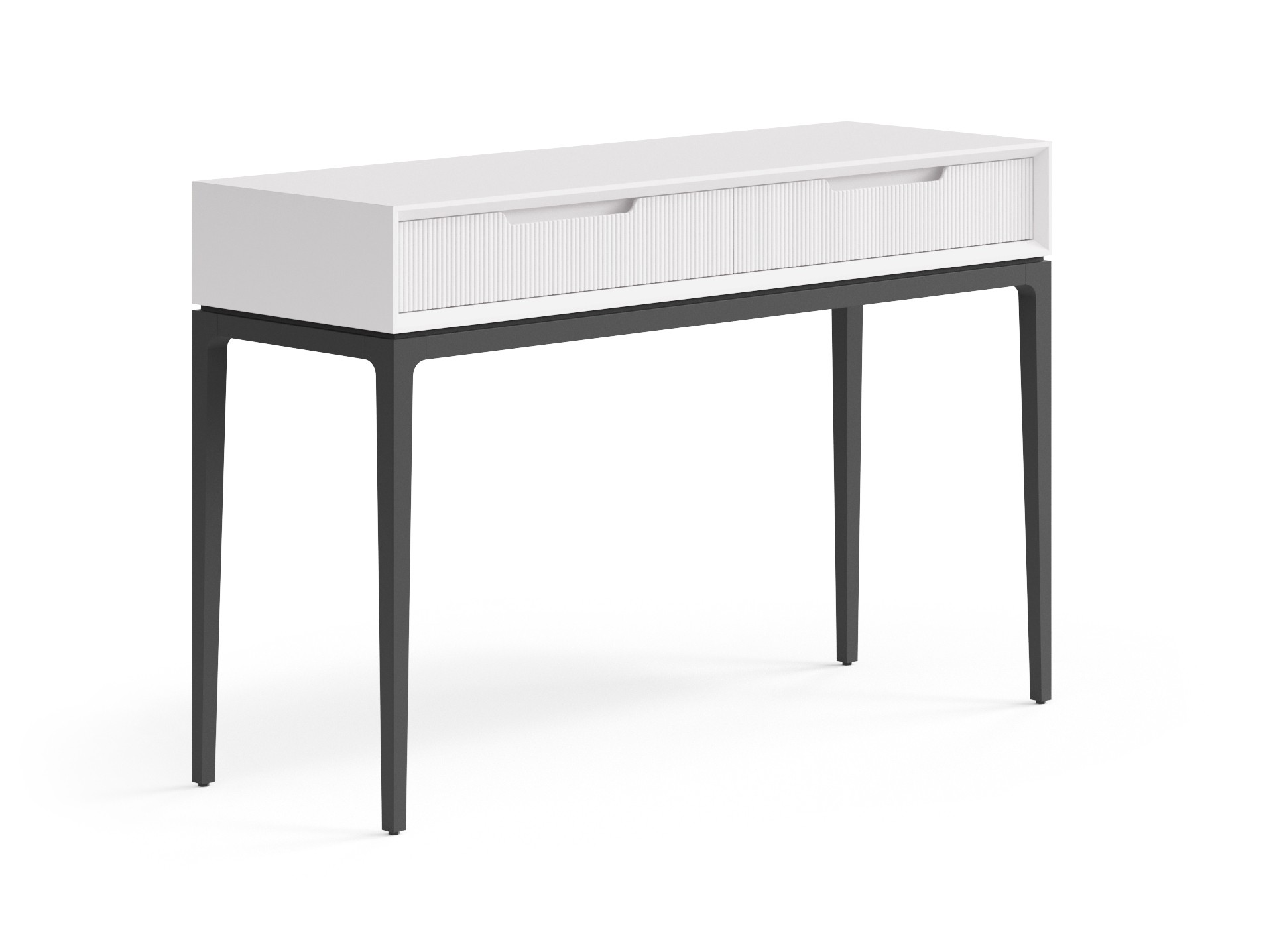 Консоль с двумя выдвижными ящиками на высоких элегантных опорах идеально впишется в любое помещение вашего дома и сделает его особенным. Рифлёная поверхность фасада подчёркивает изысканный вид изделия и приятна на ощупь. А скрытые направляющие ящиков с доводчиками и фрезерованные ручки делают пользование консолью мягким, уверенным и максимально комфортным. Ваза с букетом свежих цветов, любимые сборники литературы и тёплый торшер на консоли создадут истинный уют.