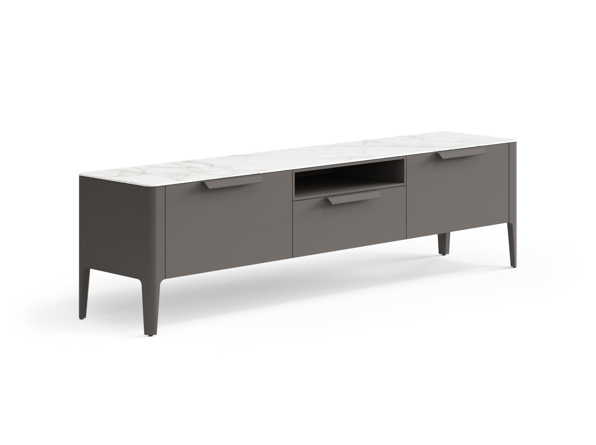 Стильная ТВ тумба гармонично впишется в вашу гостиную и сделает зону отдыха приятной и комфортной. Боковые дверцы и центральный выдвижной ящик позволят разместить все необходимые вещи за гладкими фасадами. Ничто не будет отвлекать вас от отдыха и просмотров любимых фильмов.