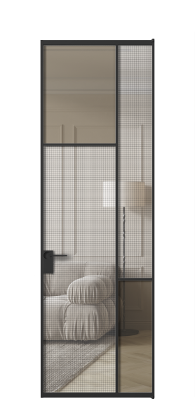 АЛПЛ041.10 Алюминий Черный Декоративное стекло с сеткой "Mesh silver", триплекс, 6 мм + Прозрачное бронзовое стекло, триплекс, 6 мм