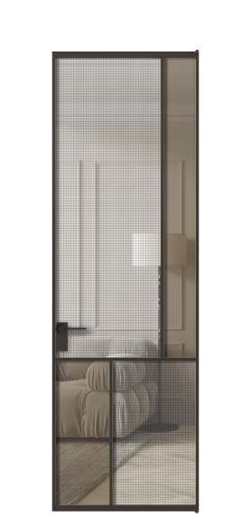 АЛПЛ041.21 Алюминий антрацит Декоративное стекло с сеткой "Mesh silver", триплекс, 6 мм + Прозрачное бронзовое стекло, триплекс