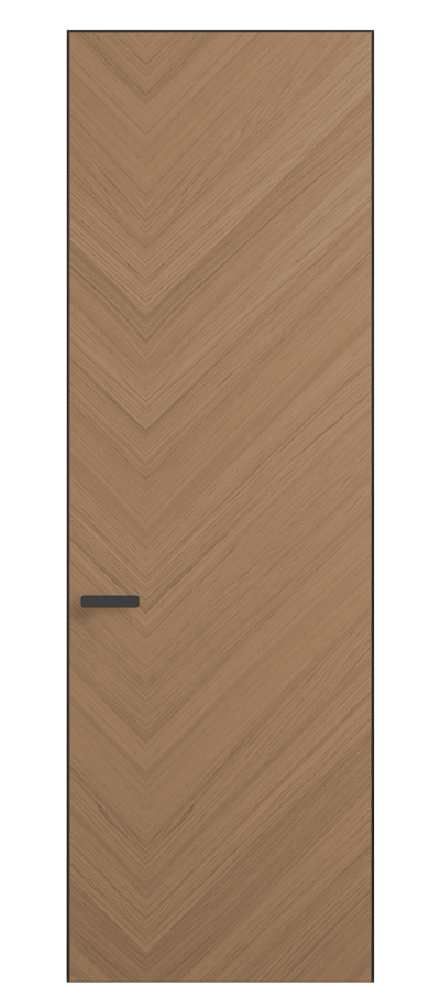 Полотно Rift в скрытом алюминиевом коробе становится полноценным элементом декора. В коллекции представлено 9 моделей дверей в высоте до 3 метров. Рисунок раскладки шпона варьируется от простого до сложного. «Рубашка» для каждого полотна подбирается вручную по цвету, текстуре и фактуре.