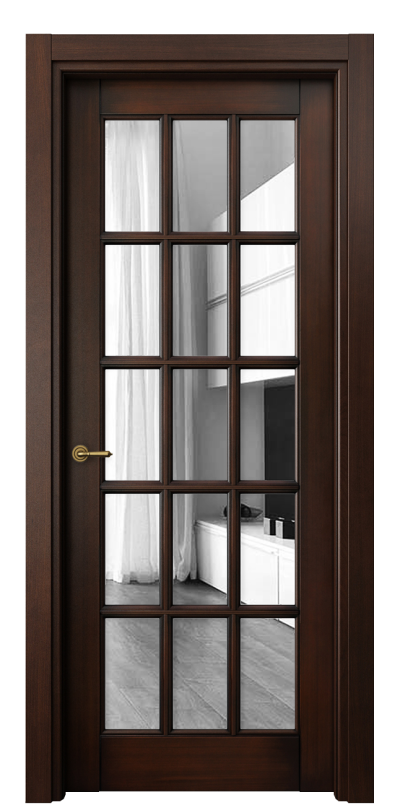 Двери с классической деревянной решёткой создавались специально для парадных проёмов: большая площадь остекления визуально расширяет пространство и придаёт ему торжественность. Декоративные элементы из массива бука в этой коллекции повторяют профили деталей глухих полотен: вы можете создавать необходимые комбинации на свой вкус.