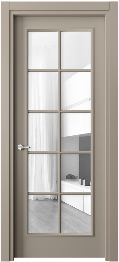 Дверь межкомнатная 8112 МНСР Прозрачное стекло. Цвет Матовый нейтральный серый. Материал Гладкая эмаль. Коллекция Paris. Картинка.